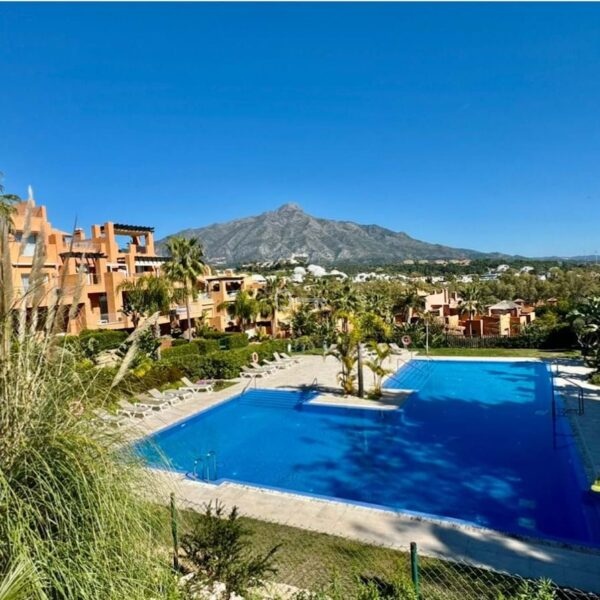 Spacious 2-bedroom apartment located in gated complex Alminar de Marbella, Nueva Andalucía the heart of Marbellas Golf Valley.