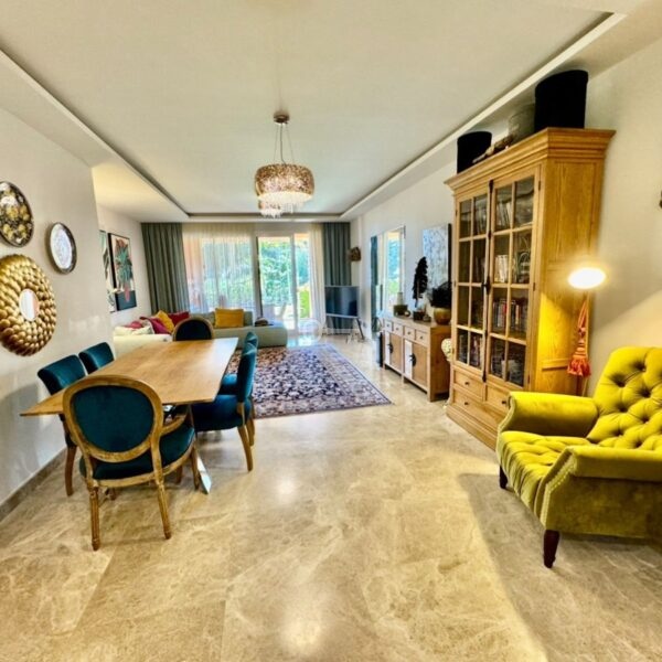 Big open-plan living and dining area with direct access to a private covered terrace and private garden with mountain and pool views.