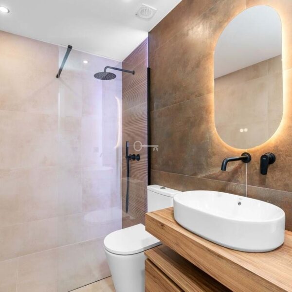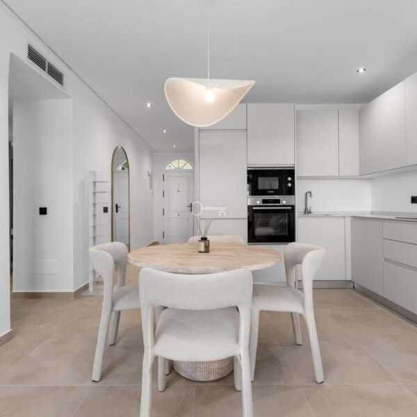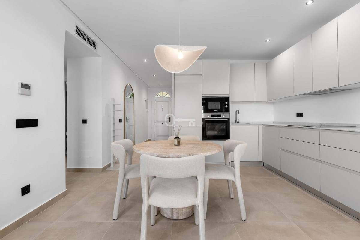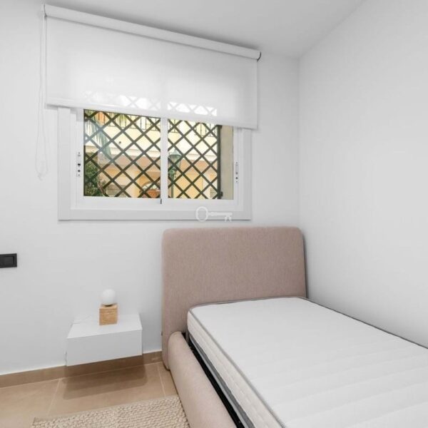 The property features three spacious bedrooms and two modern bathrooms, all completely refurbished to a high standard with a fresh, contemporary design. The open-plan living and dining area flows seamlessly onto a generous private terrace, creating the ideal indooroutdoor lifestyle that the Costa del Sol is known for.