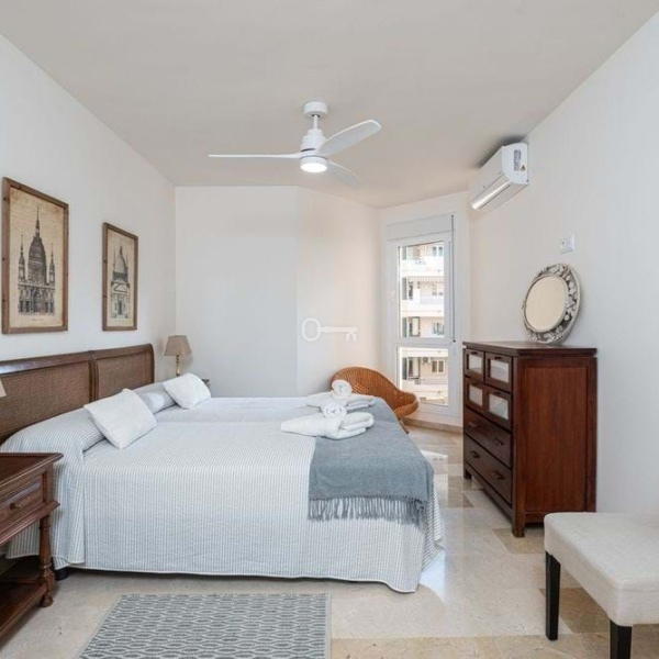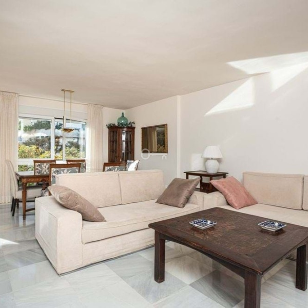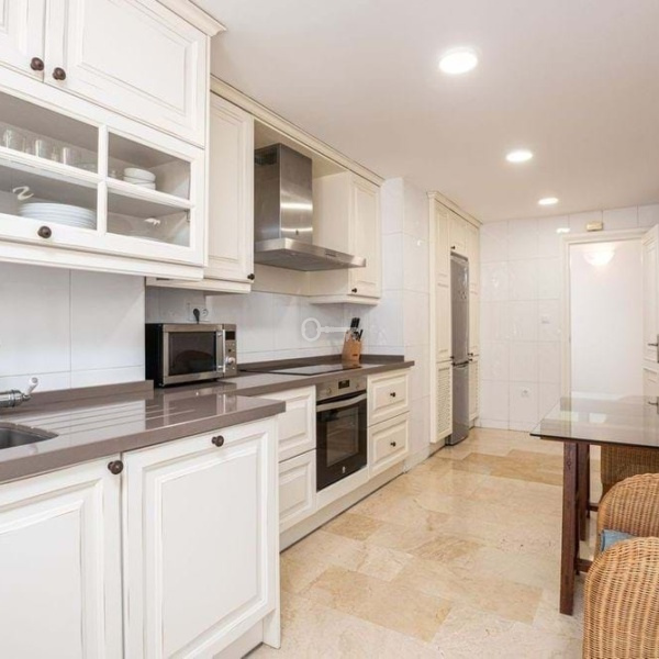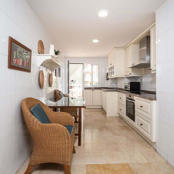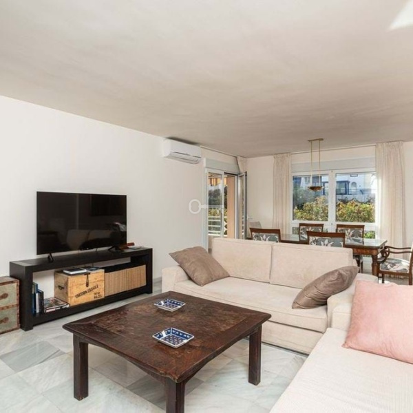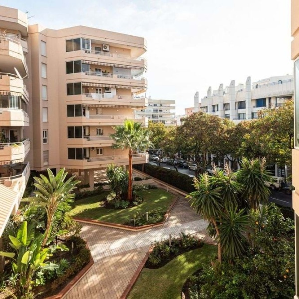 Przestronny apartament w centrum Marbelli, odnowiony 3 lata temu, o powierzchni 152 m2, z miejscem garażowym z łatwym dostępem i pomieszczeniem gospodarczym. Nieruchomość od strony południowo-wschodniej posiada duży taras z widokiem na wspólny ogród.