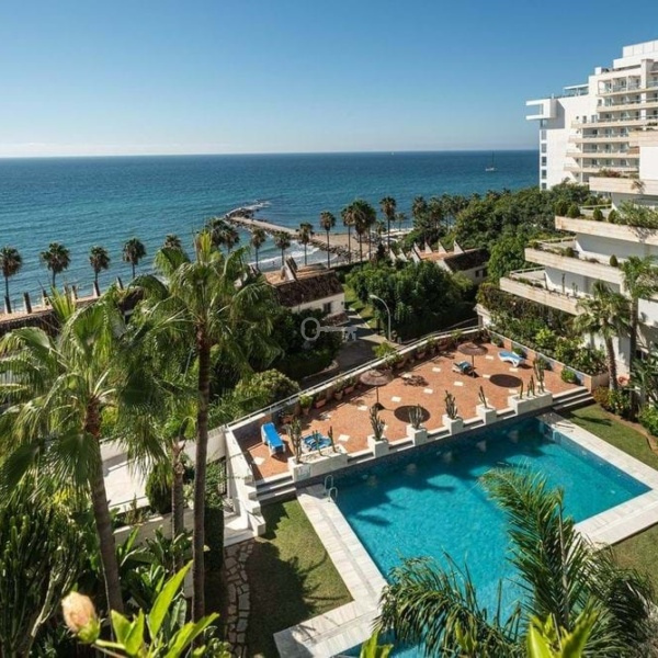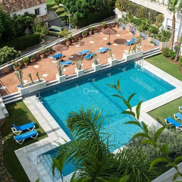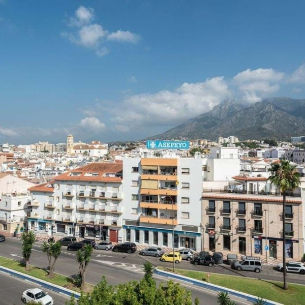 Budynek Puerta de Marbella, w którym znajduje się ta nieruchomość, jest jednym z najbardziej charakterystycznych w Marbelli, w którym oprócz tego, że znajduje się przed nadmorską promenadą, można cieszyć się wspaniałym basenem z ogrodami. Zbudowany w latach 90-tych, wyróżnia się fantastyczną lokalizacją, zaledwie trzy minuty spacerem od Plaza de los Naranjos, minutę od portu rybackiego i jego wspaniałych restauracji rybnych, w otoczeniu najlepszych barów plażowych w Marbelli i ze wszystkimi usługami w promieniu stu metrów.