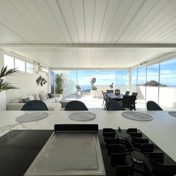 Penthouse zbudowany w 2020 roku obejmuje 3 sypialnie, 5 łazienek, salon / jadalnię na otwartym planie z najwyższej klasy kuchnią i sprzętem AGD. Prywatna winda prowadząca bezpośrednio do apartamentu oraz drogie tarasy i solarium zapewniające nieprzerwany 180-stopniowy widok na morze, idealne do spożywania posiłków na świeżym powietrzu i spotkań. Ponadto penthouse posiada 2 podziemne, strzeżone miejsca parkingowe.