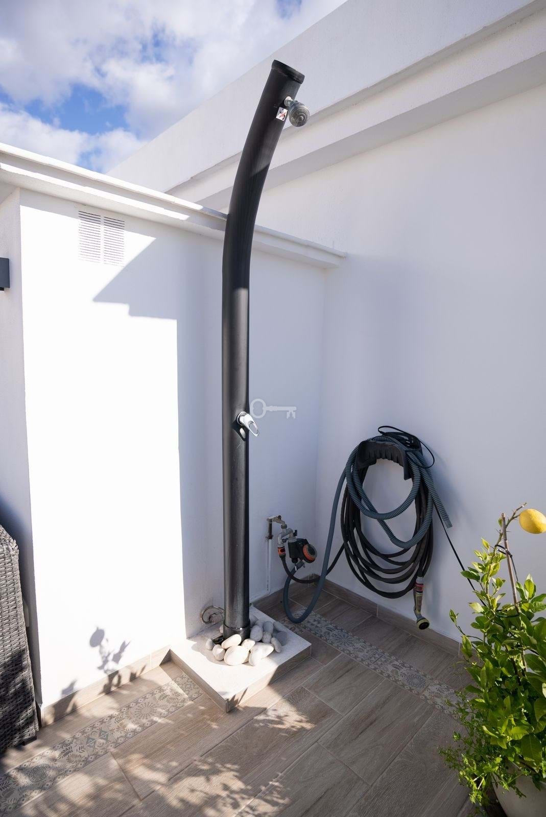 Na tarasie znajduje się również prysznic na świeżym powietrzu i pomieszczenie gospodarcze z dużą ilością miejsca do przechowywania.