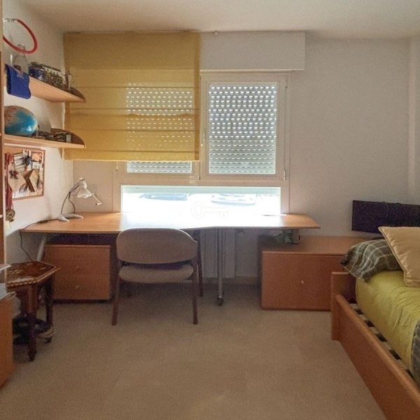 Sypialnia służbowa lub domowe biuro z niezależną łazienką.