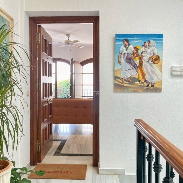 -Na piętrze wejściowym znajduje się salon z kominkiem, w salonie znajdują się 2 duże okna, które dają dostęp do odpowiednich balkonów i bezpośrednich widoków na tę cichą, małą uliczkę pełną kwiatów charakterystycznych dla starego miasta, kuchni i 2 sypialni, obie również z dużymi oknami i odpowiednimi balkonami, na tym piętrze znajduje się 1 duża łazienka z prysznicem.