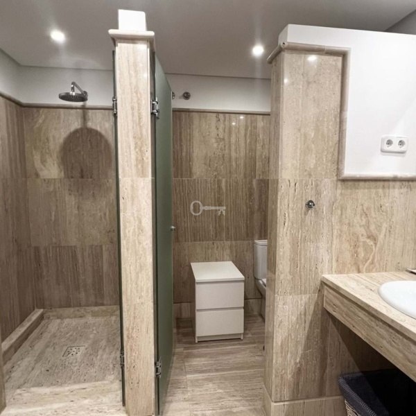 W apartamencie znajduje się jasny salon i jadalnia na otwartym planie, płynnie połączone z w pełni wyposażoną nową kuchnią. Przestrzeń dzienna otwiera się na duży zadaszony taras z dodatkowym stołem, idealny do posiłków na świeżym powietrzu, który rozciąga się na bujny, prywatny ogród z leżakami i częściowym widokiem na morze.