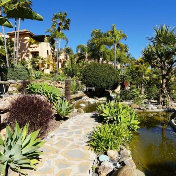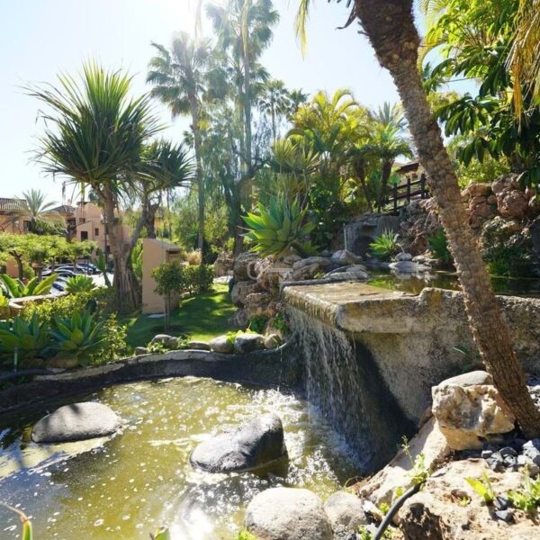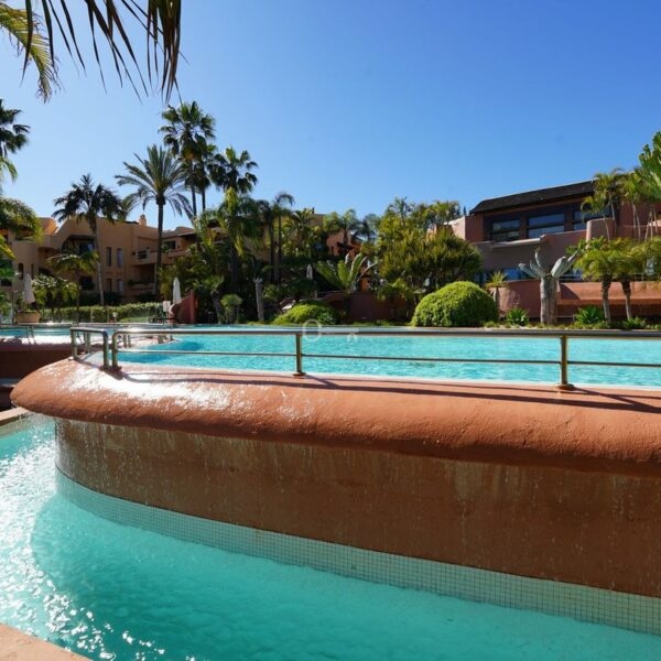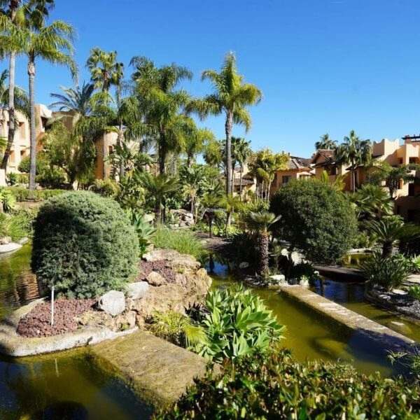 Oszałamiający, wychodzący na południe, narożny apartament z trzema sypialniami i bardzo prywatnym parterem w renomowanym Mansion Club, ekskluzywnej zamkniętej społeczności położonej u podnóża Sierra Blanca. Ta inwestycja zaprojektowana przez wiodącego architekta Melvina Villarroela położona jest w tropikalnych ogrodach krajobrazowych z chodnikami, jeziorami, pergolami, mozaikami i innymi wykwintnymi elementami, które nadają tej inwestycji wyraźny andaluzyjski smak. Mieszkanie składa się z holu wejściowego, przestronnego salonu i jadalni z francuskimi oknami prowadzącymi na zadaszony taras, wyposażonej kuchni na otwartym planie, pomieszczenia gospodarczego, dwóch sypialni gościnnych ze wspólną łazienką, głównej sypialni z łazienką z jacuzzi. Wysokiej jakości wykończenia i design, z ogrzewaniem podłogowym w całym budynku, ciepłą i zimną klimatyzacją oraz systemem wideodomofonowym. Kompleks znajduje się zaledwie 20 minut spacerem od Copper Tower na Złotej Mili i miasta Marbella.