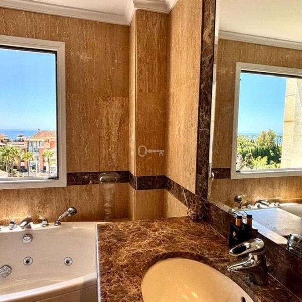 Położony w prestiżowym kompleksie El Embrujo w Puerto Banús, ten pięknie utrzymany apartament oferuje wyjątkowe połączenie przestrzeni, jakości i wygody w odległości krótkiego spaceru od plaży. Obejmuje trzy przestronne sypialnie z łazienkami i łącznie pięć łazienek o powierzchni około 300 m², w tym taras o powierzchni 49 m², idealny do relaksu na świeżym powietrzu. Zaprojektowany z wysokiej jakości wykończeniami, oferuje przestronne i eleganckie wnętrza zapewniające naprawdę komfortowe życie. Mieszkańcy mogą korzystać z doskonałych udogodnień, w tym odkrytego basenu, podgrzewanego basenu, strzeżonego parkingu i renomowanej restauracji bliskowschodniej. El Embrujo, Banús to jedna z najbardziej poszukiwanych inwestycji w Puerto Banús, znana ze swojej doskonałej lokalizacji i wysokiej jakości usług.