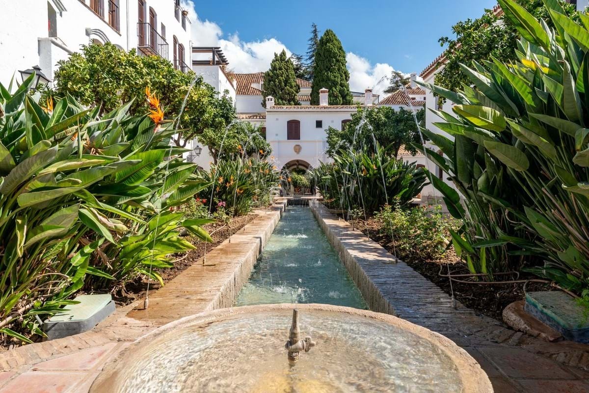 Wyjątkową zaletą tej nieruchomości jest to, że zajmuje jedyną w swoim rodzaju pozycję w układzie urbanizacji, opartą na oryginalnej pierwszej fazie, która jest często wymieniana jako najpiękniejsza ze wszystkich. Taras, podobnie jak salon i jadalnia, wychodzi na rozległy widok na Plaza, z aleją majestatycznych, strzelistych palm oraz inspirowanych Alhambrą fontann i dróg wodnych, które prowadzą do zaaklimatyzowanego basenu i pięknej otaczającej zieleni.