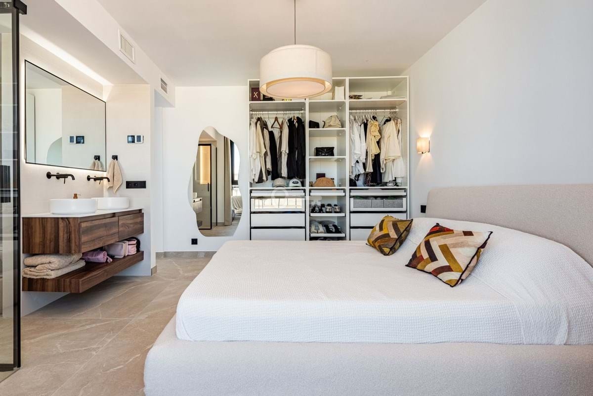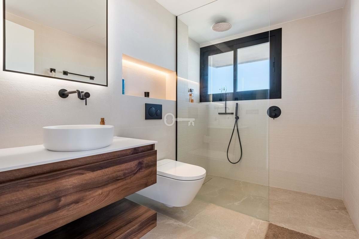 Obie łazienki wyposażone są w ogrzewanie podłogowe i samoczyszczące toalety z automatycznymi bidetami, dodając praktyczności i wyrafinowania. Trzecia sypialnia jest wszechstronna i może być również używana jako biuro, w zależności od potrzeb. Dedykowane miejsce parkingowe jest wliczone w cenę, a budynek jest wyposażony w windę ułatwiającą dostęp.