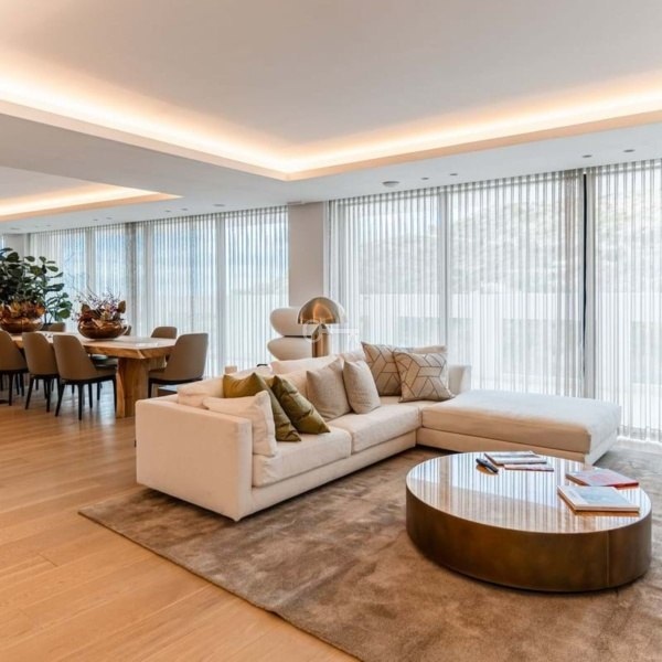 Apartament posiada ogrzewanie podłogowe, a także klimatyzację z oddzielnym panelem sterowania w każdym pokoju, dodatkowo w salonie i wszystkich sypialniach znajdują się miskotery.