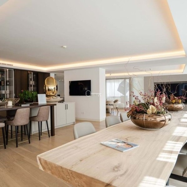 Apartament oferuje hol wejściowy z toaletą dla gości, zapraszając do dużego salonu – jadalni z otwartą kuchnią, która jest wyposażona w wysokiej jakości urządzenia firmy Gaggenau gotowe do zamieszkania i ma bezpośredni dostęp do dużego, częściowo zadaszonego tarasu i prywatnego ogrodu. Główna sypialnia ma dostęp do tarasu i luksusowej łazienki. Ponadto 2 sypialnie dla gości dzielą łazienkę. Wszystkie sypialnie mają wbudowane szafy i duże okna od podłogi do sufitu. Istnieje również oddzielna pralnia.