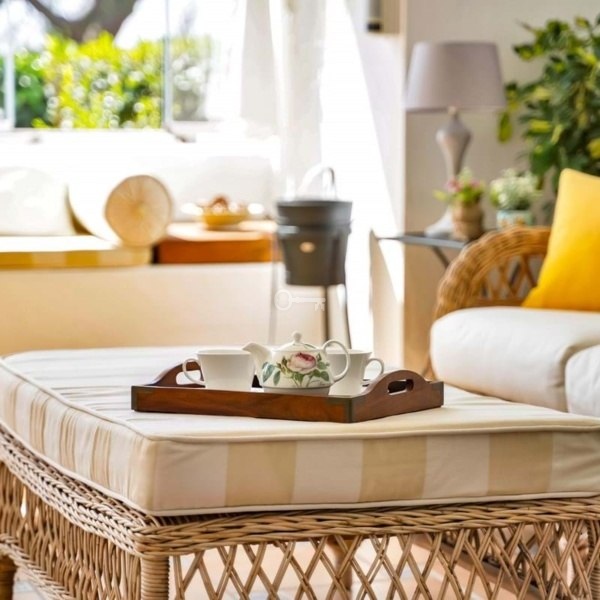 Przestronne obszary mieszkalne: Apartament posiada przestronny salon i jadalnię z przytulnym kominkiem, idealny do rozrywki lub relaksu. Duże okna i bezpośredni dostęp do prywatnego ogrodu podkreślają jasną, przewiewną atmosferę, jednocześnie prezentując widoki na pole golfowe i morze.