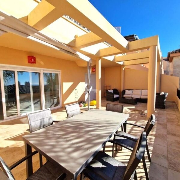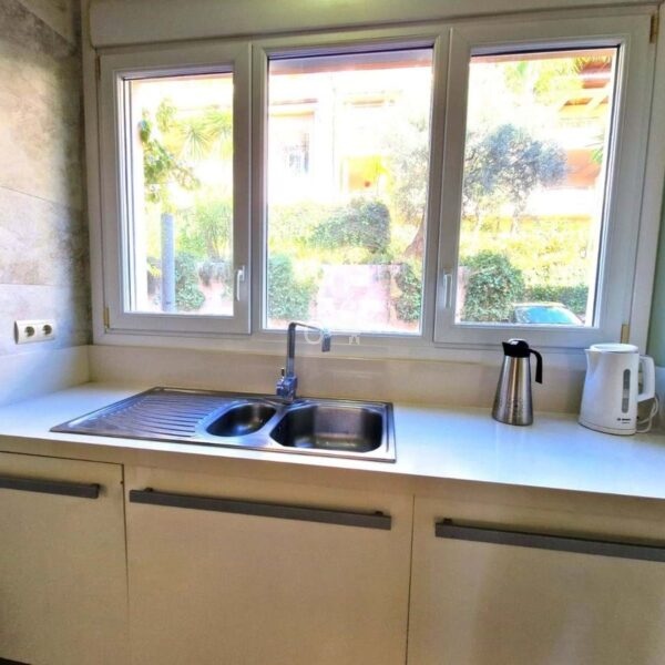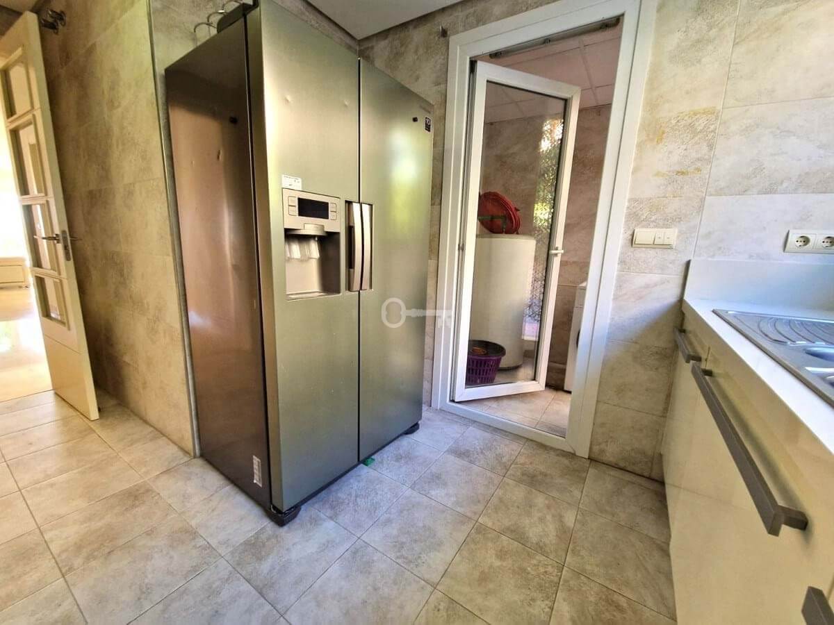 Oferuje praktyczny układ z dwiema dwuosobowymi, przestronnymi sypialniami z dużymi nowoczesnymi szafami wnękowymi, dwie niedawno odnowione łazienki z marmurowymi płytkami i nowymi wannami, w pełni wyposażoną kuchnię niedawno odświeżoną z dostępem do wygodnej pralni z pralką oraz przestronny salon z jadalnią otwierający się na taras o powierzchni 47 m² z całodziennym słońcem i częściowym widokiem na morze, idealny do relaksu lub rozrywki. Udogodnienia premium obejmują nową klimatyzację wbudowaną w podwieszane sufity, zapewniającą efektywność energetyczną i komfort.