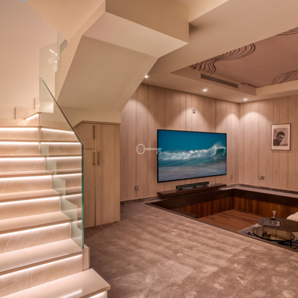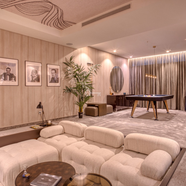Ten elegancki, dwupoziomowy apartament na parterze o powierzchni 385 m2 obejmuje: