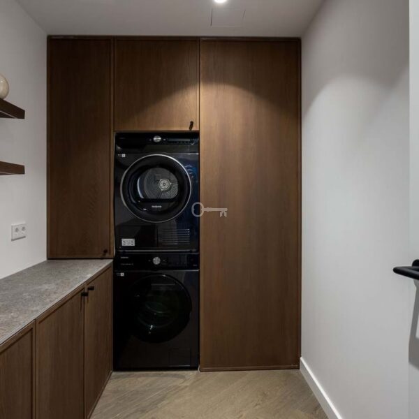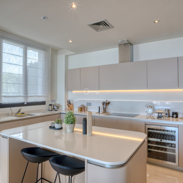Kuchnia wyposażona jest w wysokiej klasy sprzęt AGD. Apartament posiada klimatyzację z funkcją chłodzenia i ogrzewania, a także ogrzewanie podłogowe we wszystkich pomieszczeniach.