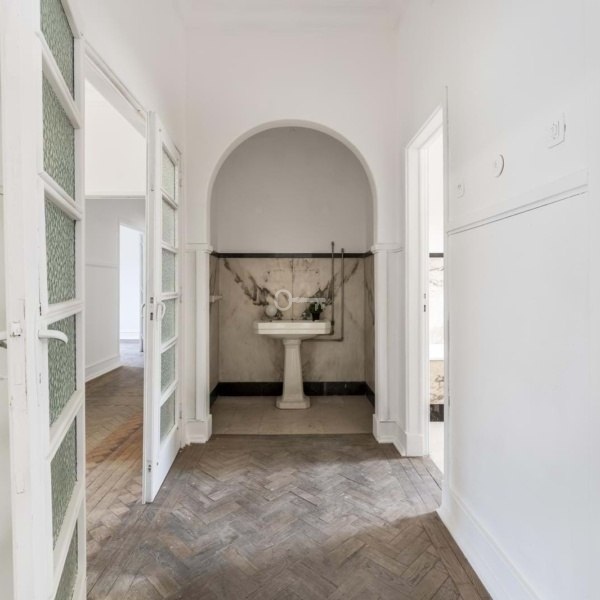 Dzięki wysokim sufitom, charakterystycznym dla klasycznej architektury, nieruchomość ta wyróżnia się przestronnymi pokojami i dobrze rozplanowanym, funkcjonalnym układem, oferując ogromny potencjał do przekształcenia w naprawdę wyjątkowy apartament.