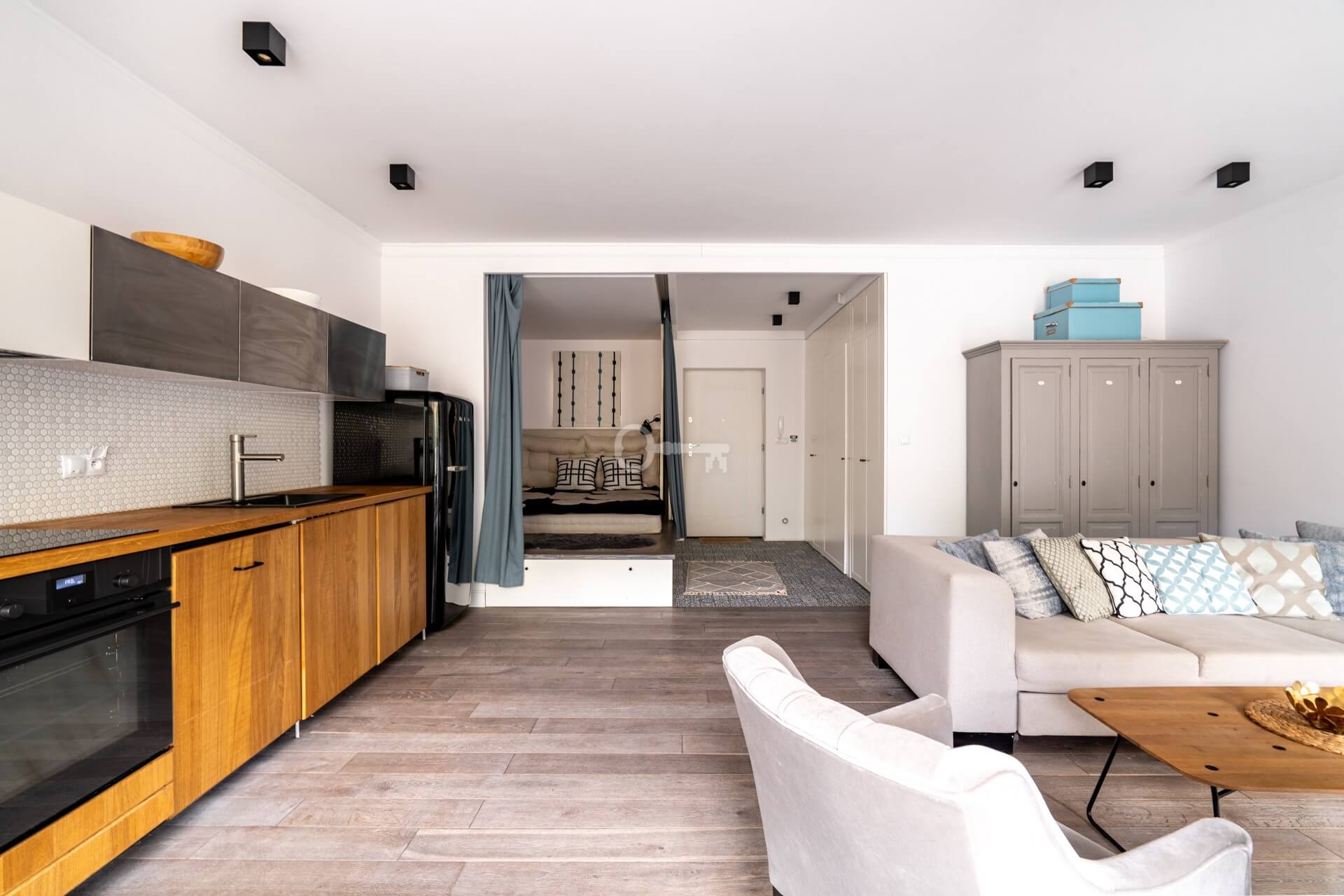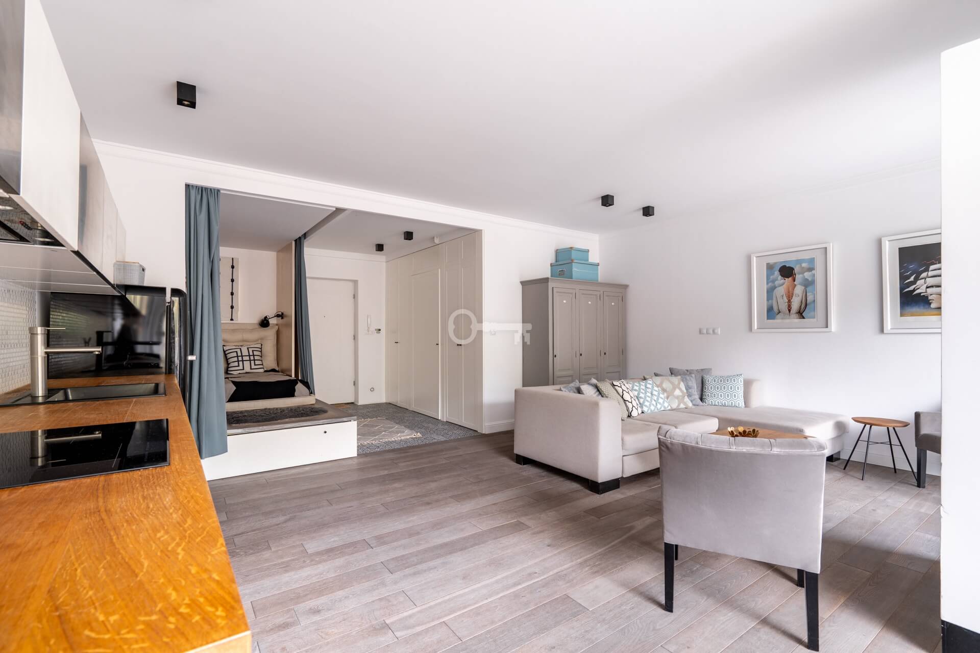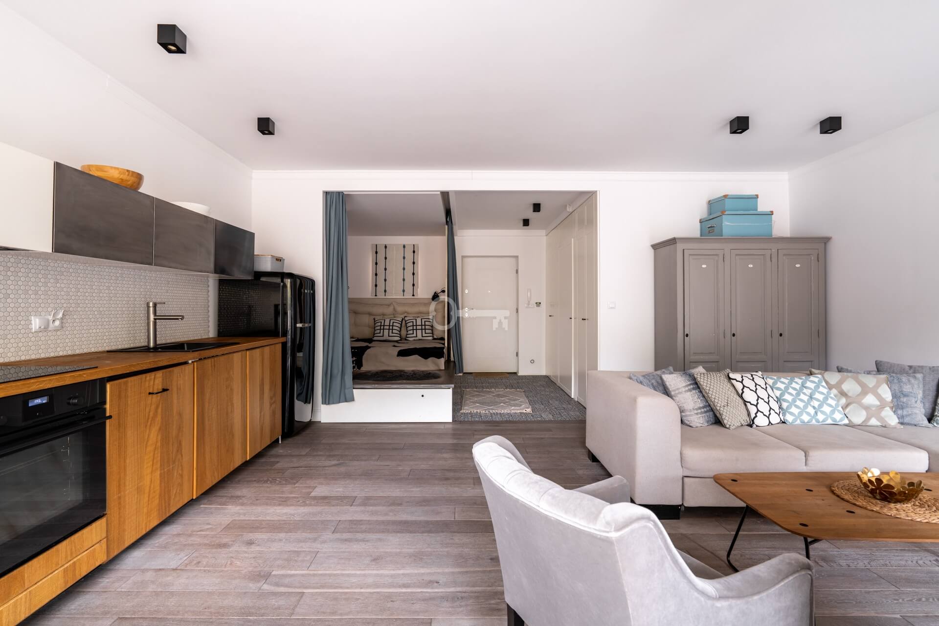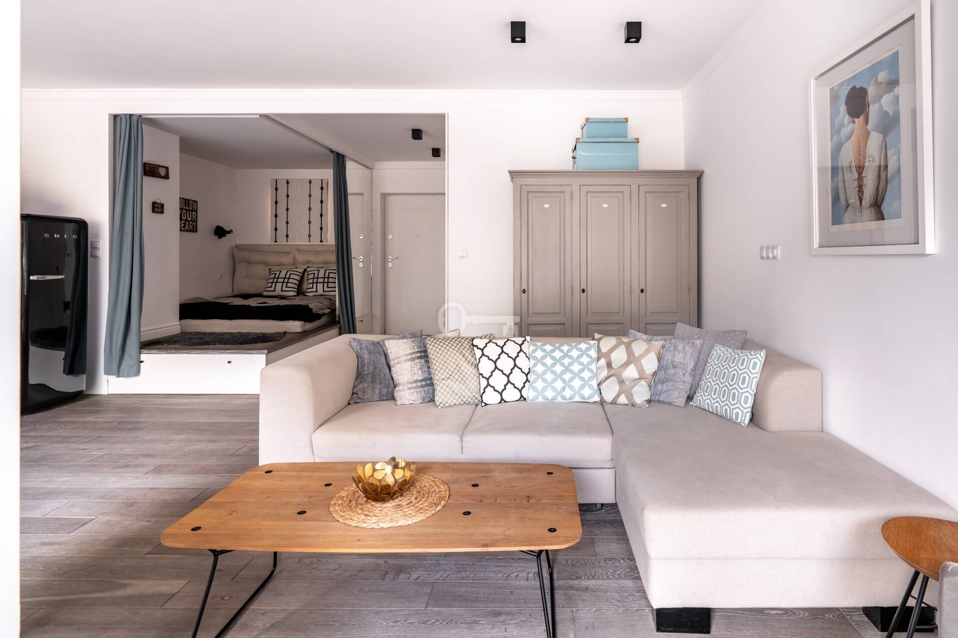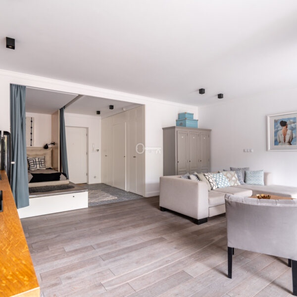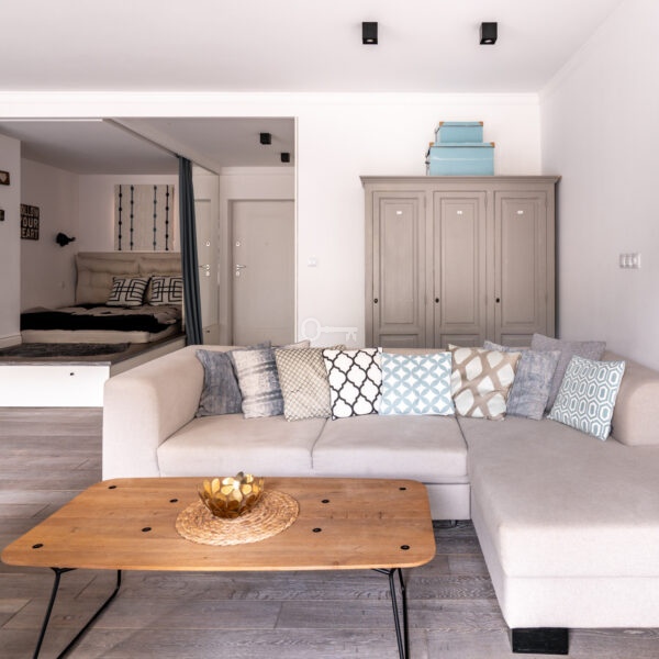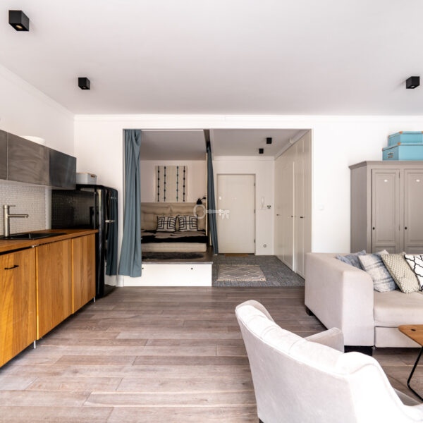 * Salonu z aneksem kuchennym z wydzieloną strefą sypialni,