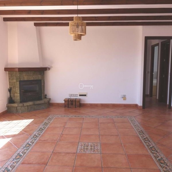 Nieruchomość posiada hol wejściowy prowadzący do przestronnego salonu / jadalni z belkowanym sufitem i kominkiem z żeliwnym piecem. Pokój ten jest również wyposażony w podwójną klimatyzację. Drzwi patio prowadzą na południowy taras z panoramicznym widokiem na wybrzeże i morze. Taras ma zarówno otwarte, jak i zadaszone obszary, dzięki czemu można cieszyć się słońcem lub cieniem.