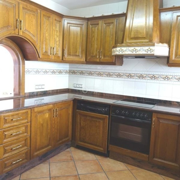 Kuchnia znajduje się tuż obok salonu / jadalni i jest w pełni wyposażona w dębowe szafki, podwójny zlew, granitowy blat i zmywarkę. Przy kuchni znajduje się pomieszczenie gospodarcze z pralką, lodówką/zamrażarką i szafkami do przechowywania. Drzwi z pomieszczenia gospodarczego prowadzą na taras od strony północnej.