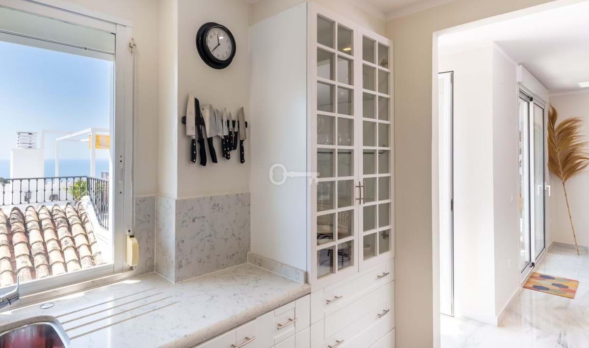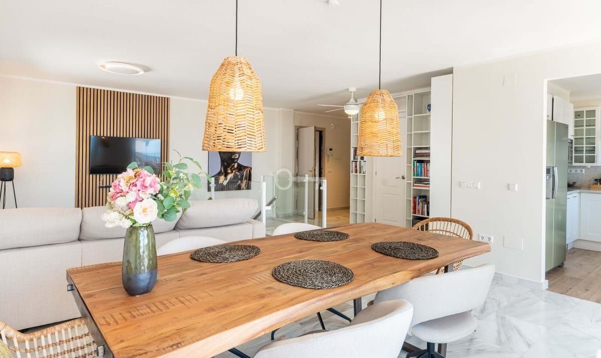 Apartament posiada przytulny hol wejściowy, przestronny i jasny salon z toaletą dla gości, pomieszczenie gospodarcze i stylową kuchnię. Z salonu masz bezpośredni dostęp do fantastycznie przestronnego tarasu, podzielonego na kilka zachęcających stref: część wypoczynkową, kuchnię na świeżym powietrzu, prysznic na świeżym powietrzu i miejsce na zainstalowanie jacuzzi. Cały taras oferuje **spektakularne panoramiczne widoki na morze**, doskonale uzupełniając doświadczenie autentycznego życia w południowej Hiszpanii.