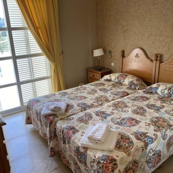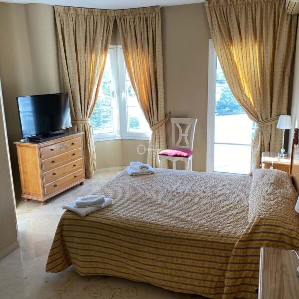 Double guest bedroom with access to a small private terrace overlooking the golf course.