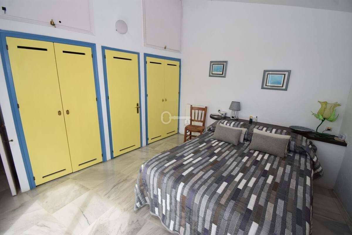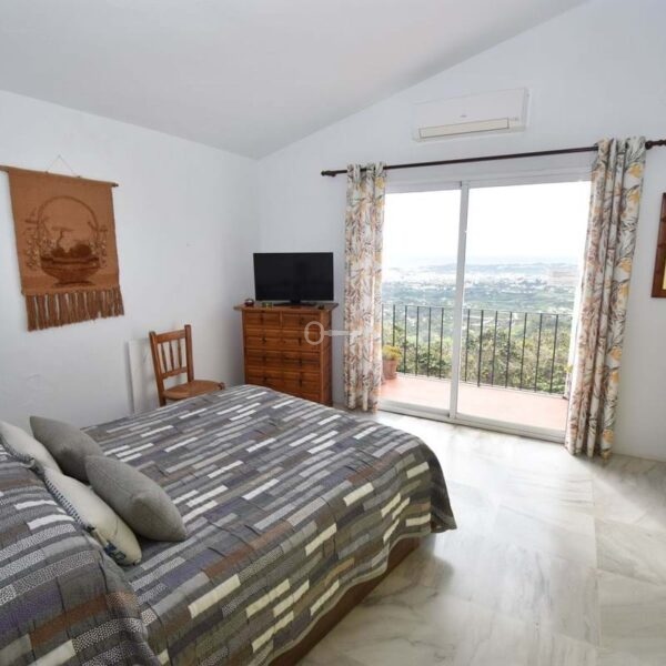 From the main hall, to the left is the fitted kitchen – the units in wood with quality work surfaces and white goods, view to the entrance plus an attractive arch view with an impressive wooden beam surface looking to the large reception area and through the arch to the spacious lounge with a wonderful andalucian fireplace and floor to ceiling sliding doors that frame the most amazing far-reaching views to the terrace and the awesome coastline, during the day – stunning and at night, enjoy the twinkling lights of the coastal towns below and spot a cruise ship or two out to sea!