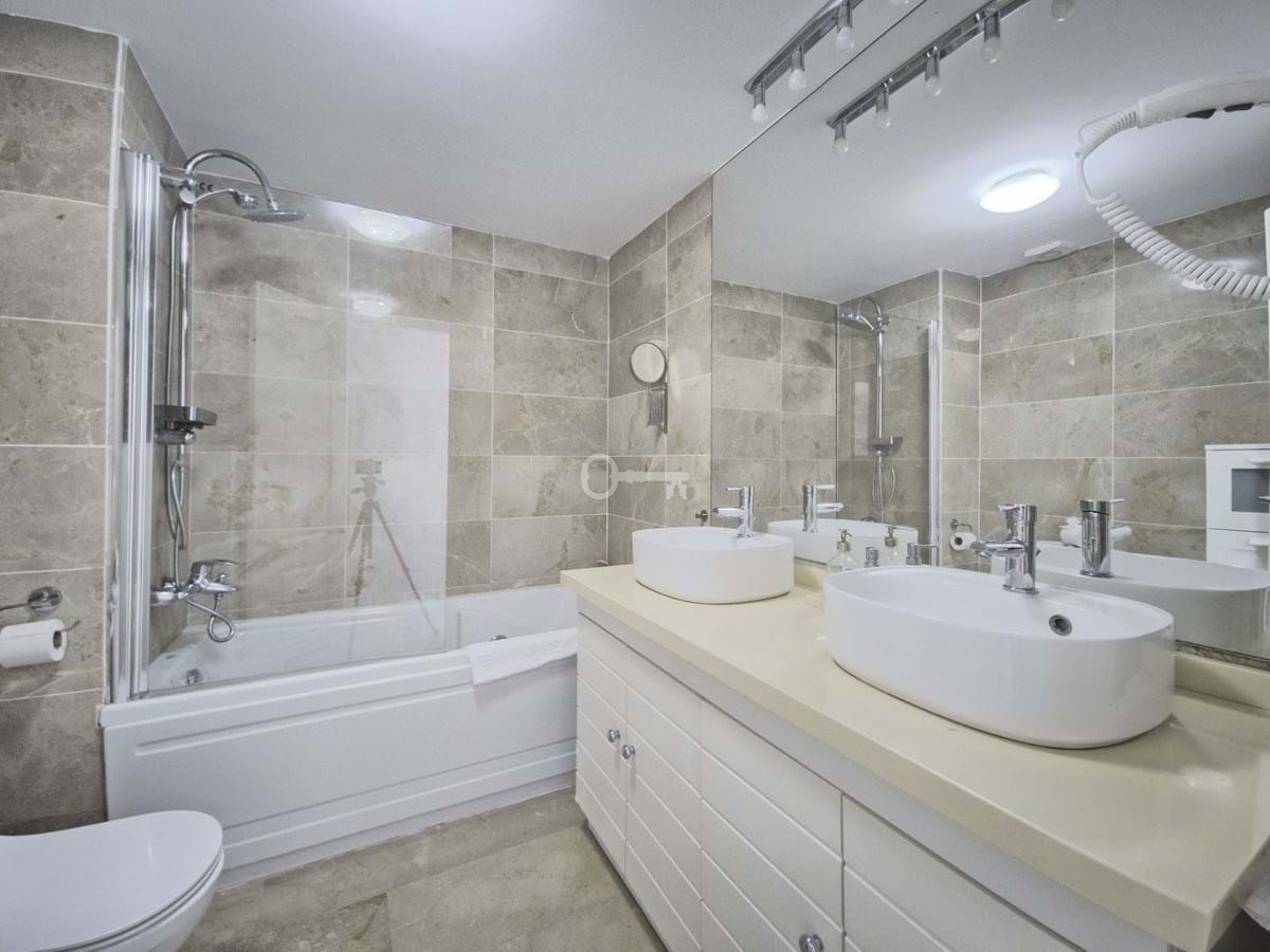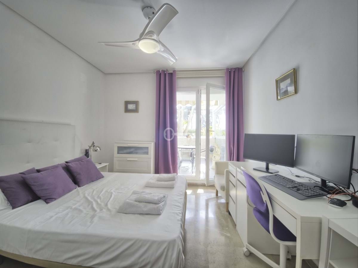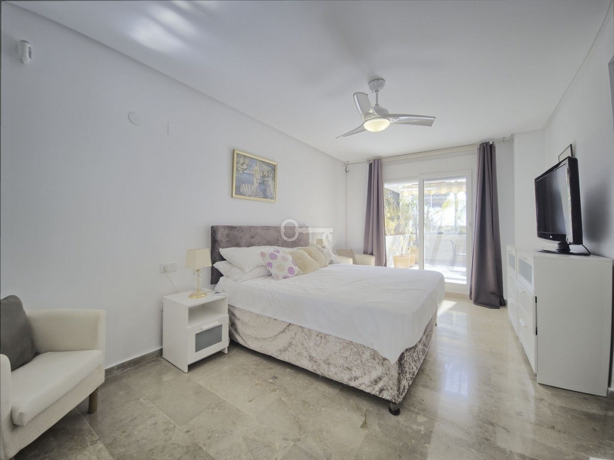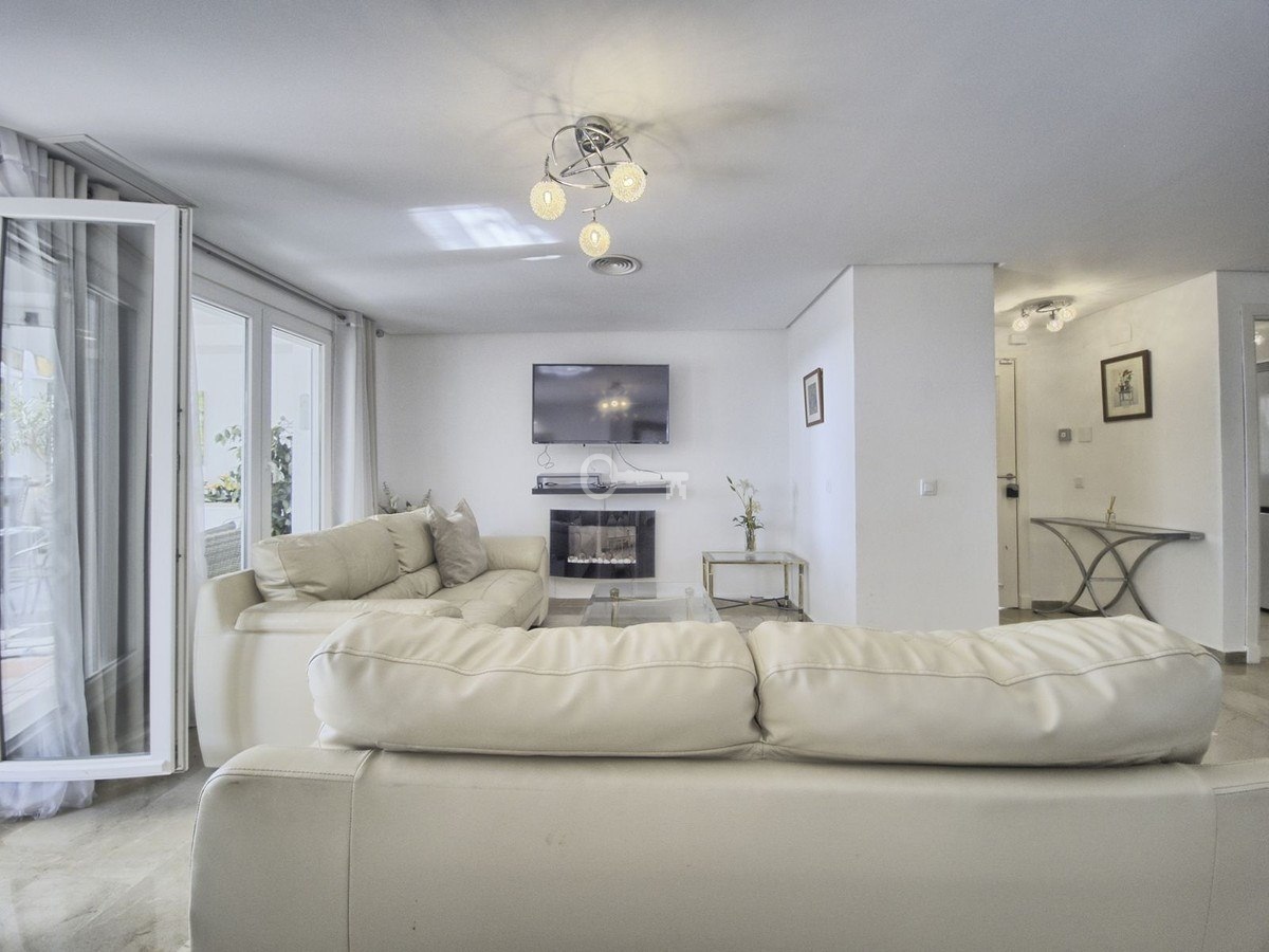 Nieskazitelny narożny apartament z dwiema sypialniami na parterze, oferowany w pełni umeblowany, z widokiem na pole golfowe Miraflores. Nieruchomość posiada licencję turystyczną i udokumentowaną historię wynajmu krótkoterminowego, dzięki czemu jest doskonałą inwestycją, a także stylowym domem.