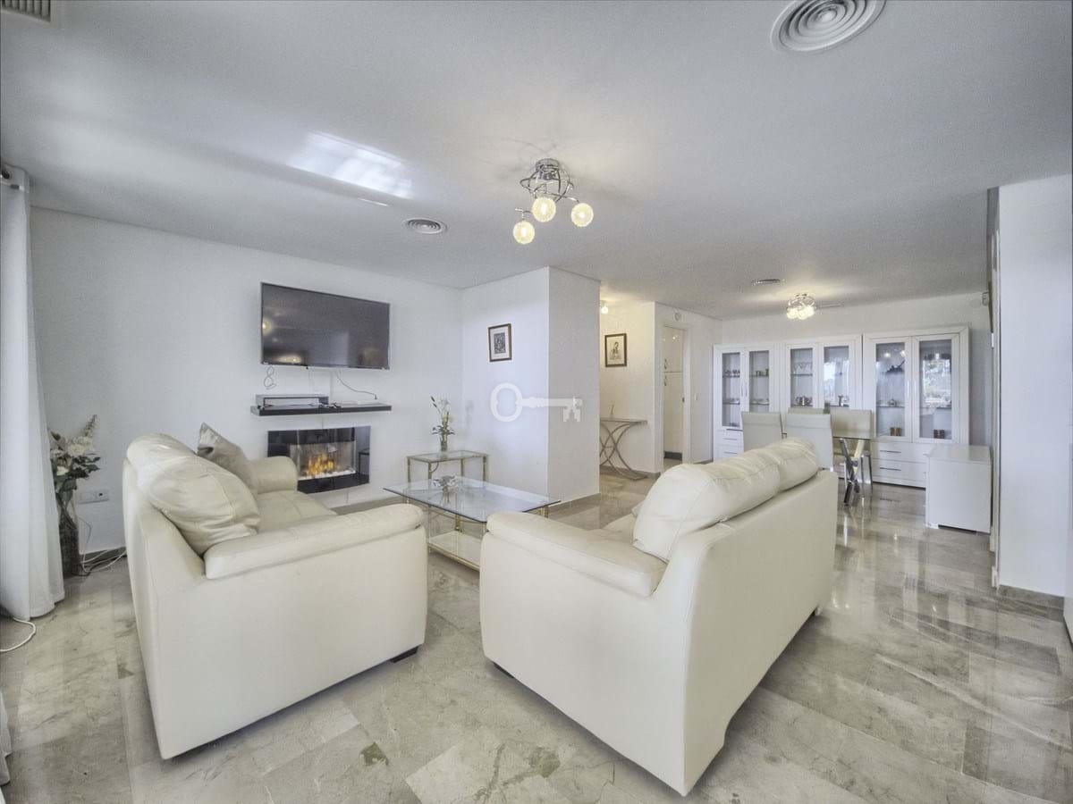 Wykończony w wysokim standardzie apartament obejmuje przedpokój z telefonem wejściowym, w pełni wyposażoną kuchnię w stylu kuchni oraz jasny salon i jadalnię na otwartym planie z kominkiem. Zarówno główna sypialnia z wbudowanymi szafami i łazienką z wanną z hydromasażem, jak i sypialnia gościnna z wbudowanymi szafami wychodzą bezpośrednio na ogromny taras.