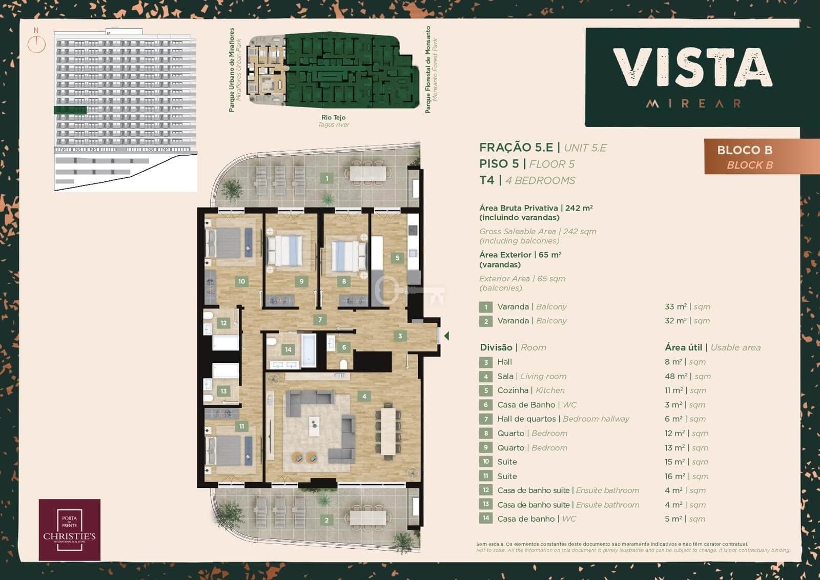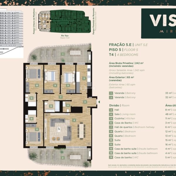 Ten apartament z 4 sypialniami o powierzchni 177 m2 dysponuje balkonem o powierzchni 65 m2, południową i północną orientacją słoneczną, trzema miejscami parkingowymi i komórką lokatorską. Położony w prestiżowej dzielnicy Miraflores, nieruchomość znajduje się na 5 piętrze.