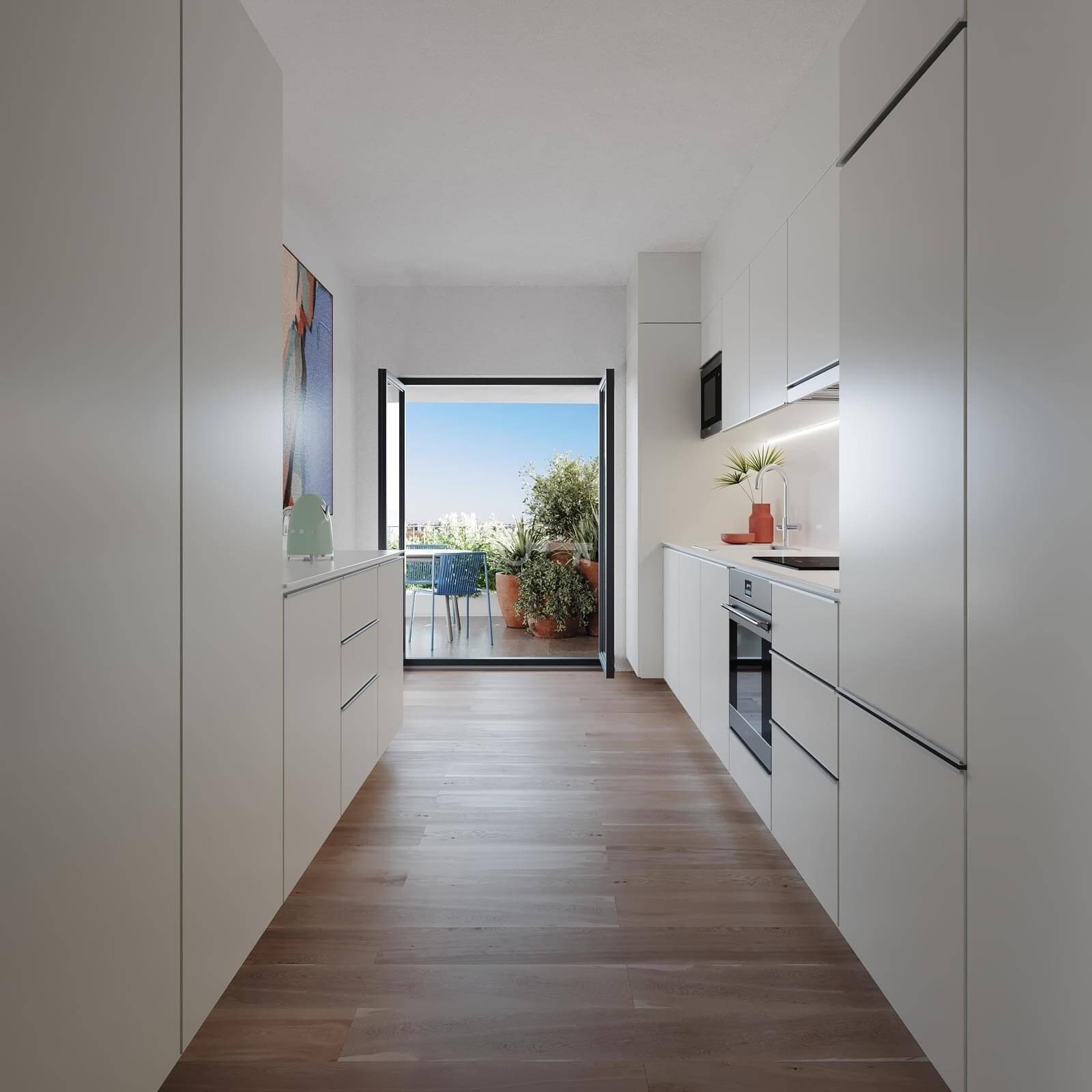 Apartament jest w pełni wyposażony w klimatyzację i wysokiej klasy urządzenia SMEG. Obejmuje trzy miejsca parkingowe (poziom -3) z instalacją do ładowania pojazdów elektrycznych, a także prywatny schowek (poziom -3), aby zapewnić funkcjonalną i zorganizowaną przestrzeń życiową.