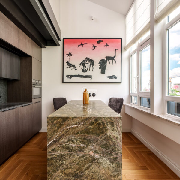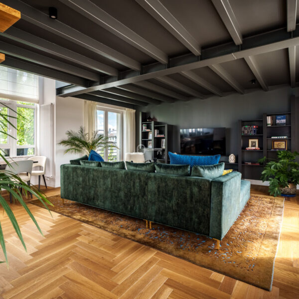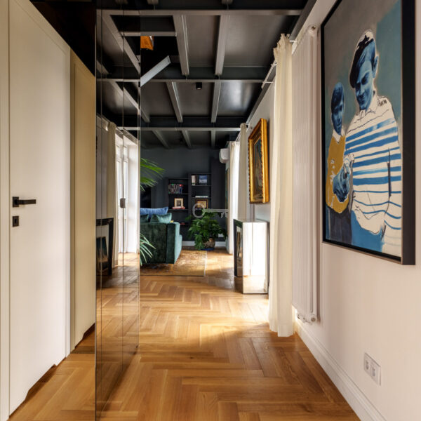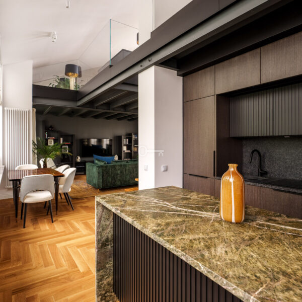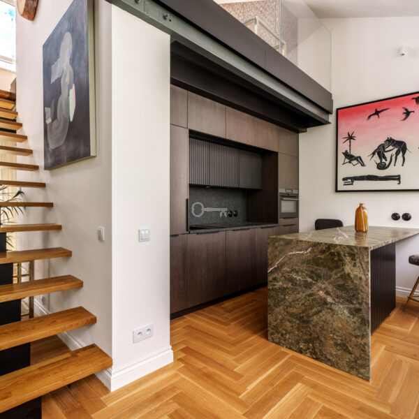 Loft w wysokim standardzie, idealny dla pary lub singla, wykończony z dbałością o detale. W cenie mieszkania pozostają zabudowy meblowe, w tym kuchnia z urządzeniami premium (Liebherr, AEG), wyspa oraz blaty i parapety z kamienia. Meble fornirowane, wykonane na zamówienie u warszawskich rzemieślników. Na podłogach nowy parkiet dębowy. Mieszkanie jest dwustronne z ekspozycją wschód-zachód. Okna od wschodu wychodzą na zielone podwórze, a od zachodu na rewitalizowany dawny areszt, obecnie muzeum z przestrzenią edukacyjną i zielonymi terenami.