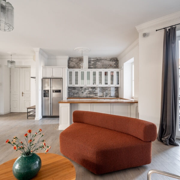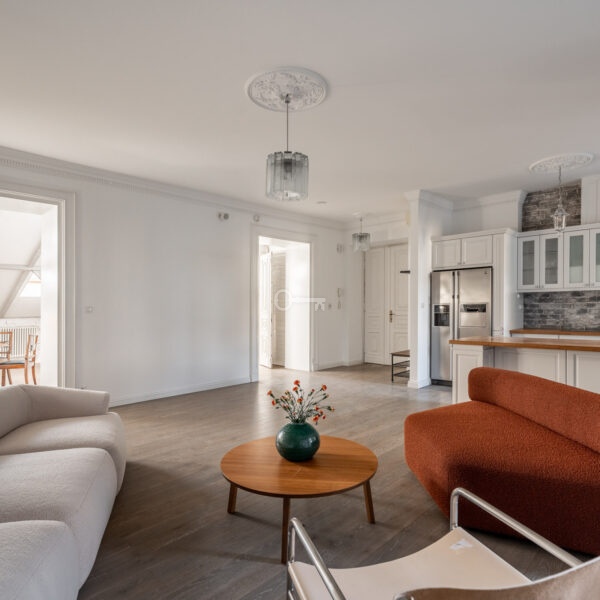 Apartament zlokalizowany jest na jednej z najbardziej prestiżowych i malowniczych uliczek Śródmieścia nazywanej „Paryżem Warszawy”.