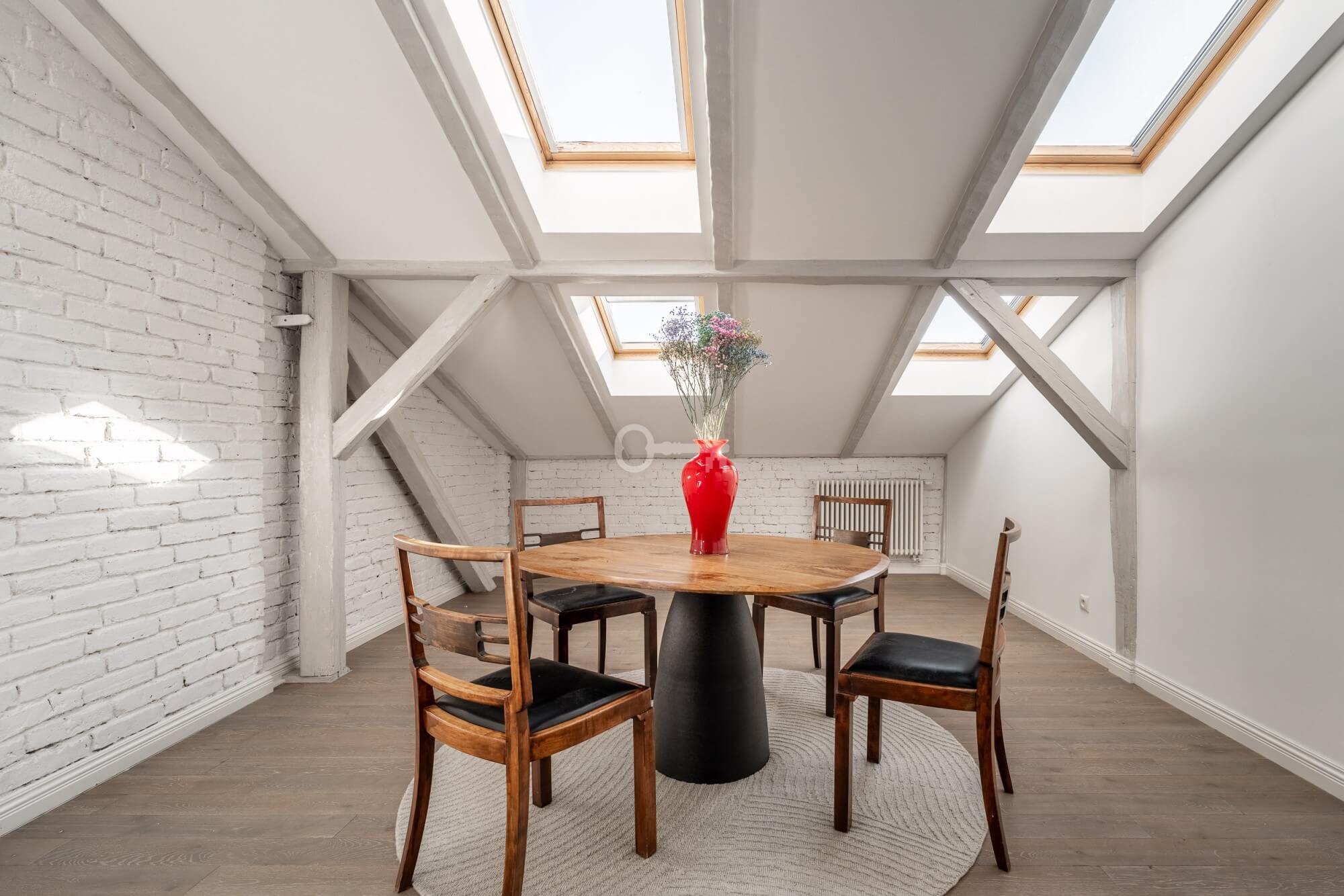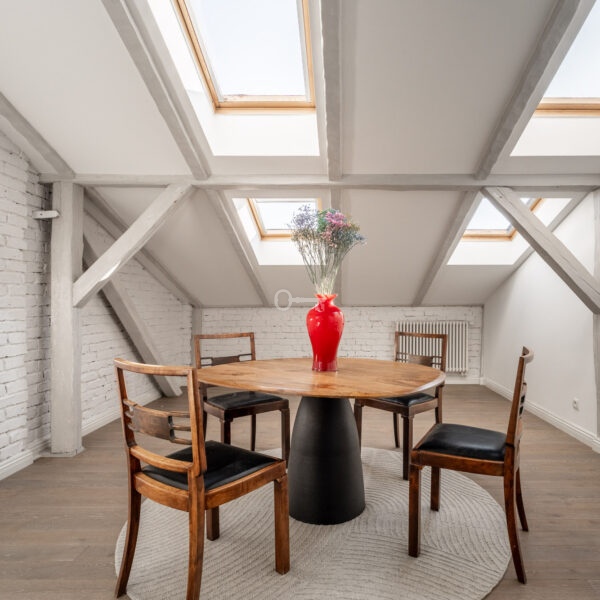 Mieszkanie zostało wykończone w wysokim standardzie, z dbałością o każdy detal. Oryginalna drewniana stolarka, klimatyzacja oraz system nagłośnienia podkreślają komfort i nowoczesność wnętrza. Przedwojenna cegła na ścianach dodaje charakteru, a ukryte w podłodze grzejniki i system rekuperacji zapewniają wygodę użytkowania.