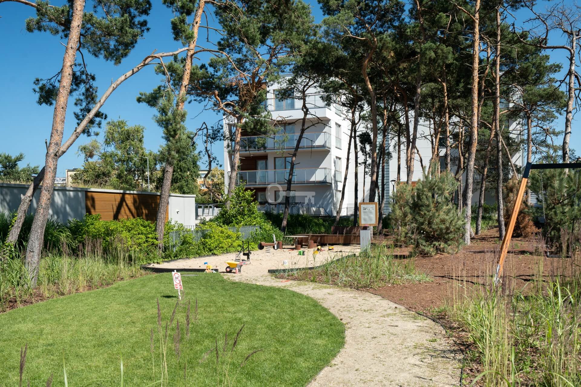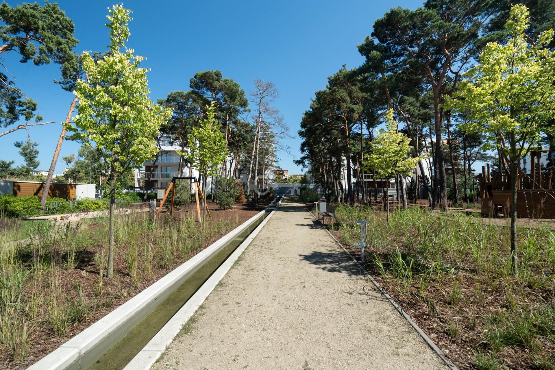 Każdy apartament został zaprojektowany z myślą o maksymalnym kontakcie z okolicą, oferując mieszkańcom balkon, taras lub prywatny ogródek osłonięty żywopłotem, a wybrane apartamenty na najwyższych piętrach mogą oferować widok na Bałtyk, rozpościerający się ponad koronami drzew.
