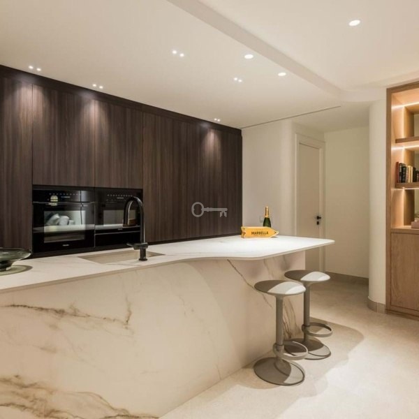 Ten wykwintny penthouse został w pełni odnowiony, z otwartym układem, wyrafinowanym współczesnym designem i wysokiej klasy sprzętem, co czyni go rzadkim znaleziskiem na lokalnym rynku. Każdy pokój został starannie urządzony przez naszego projektanta wnętrz, prezentując luksusowe detale, takie jak niestandardowe szafy, kabiny prysznicowe, wolnostojąca wanna, system dźwiękowy Bang & Olufsen i elegancki nowoczesny kominek. Rozległy taras na dachu oferuje zapierające dech w piersiach, niezakłócone widoki na Morze Śródziemne i obejmuje dedykowane jadalnie, wellness i strefy relaksu.