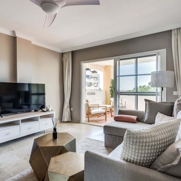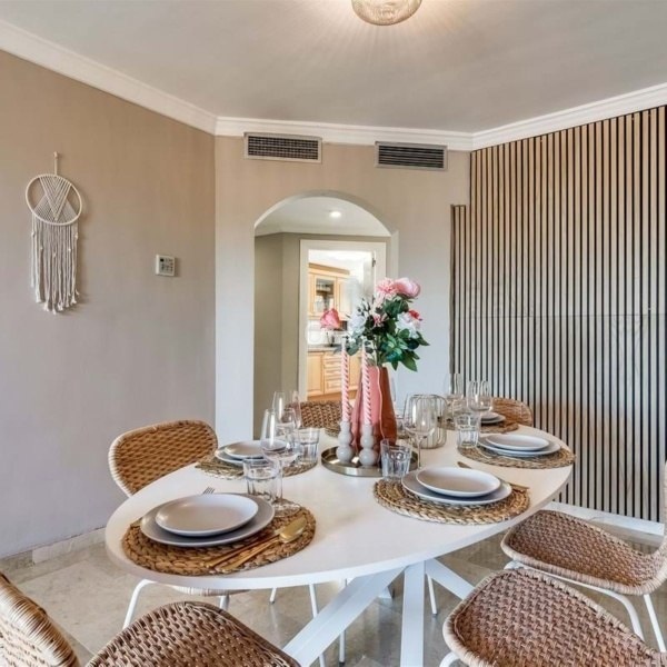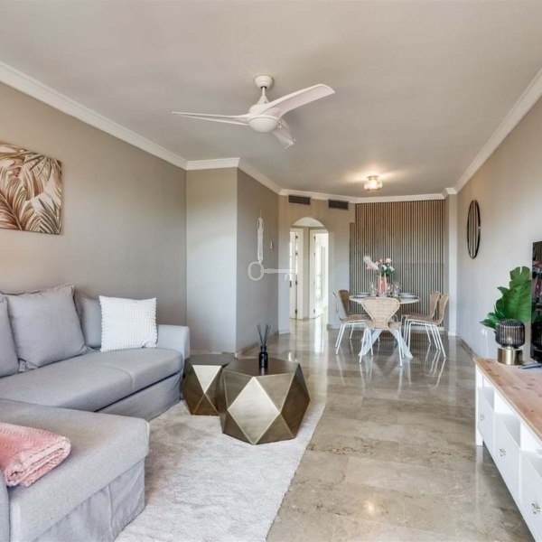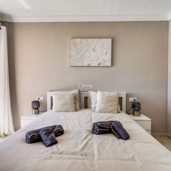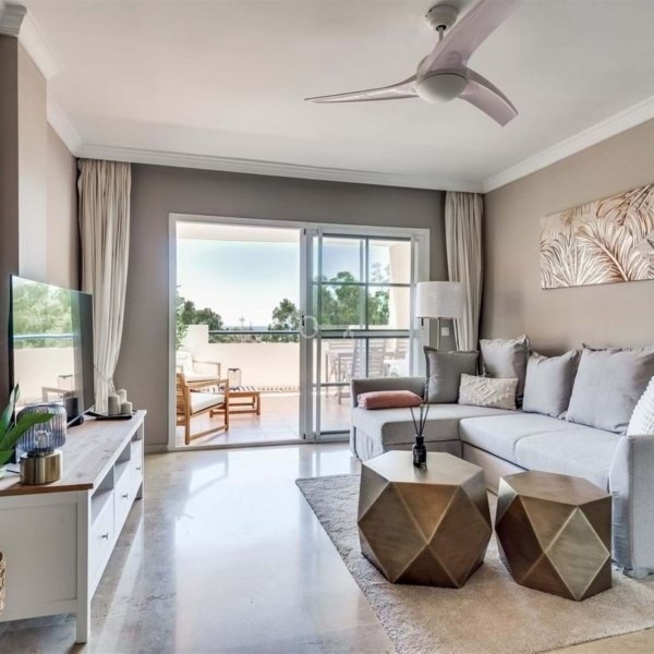 Oszałamiający apartament na środkowym piętrze New Golden Mile z panoramicznym widokiem. Ta niesamowita nieruchomość od strony południowej oferuje widoki na La Concha z kuchni i częściowe widoki na morze z tarasu.