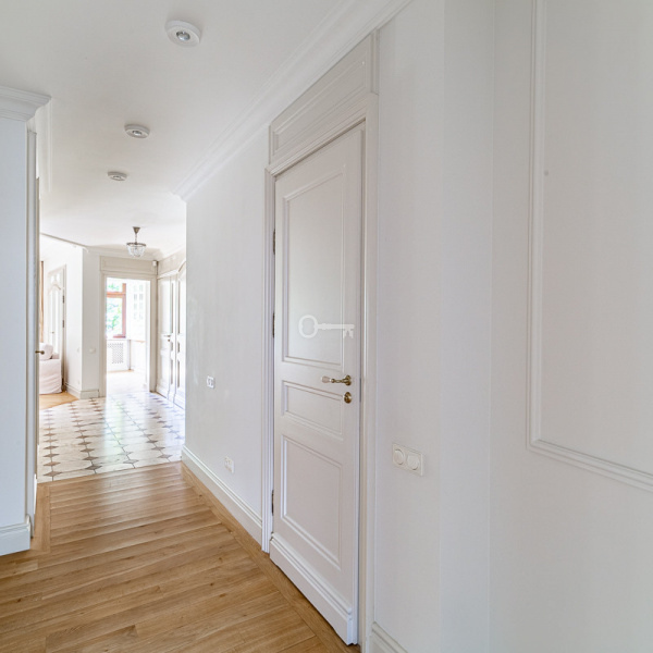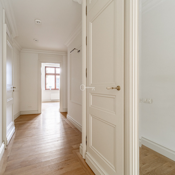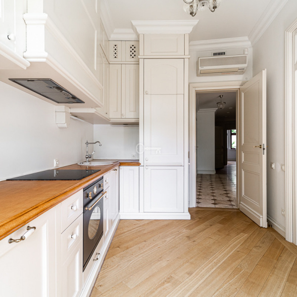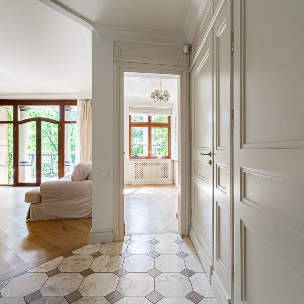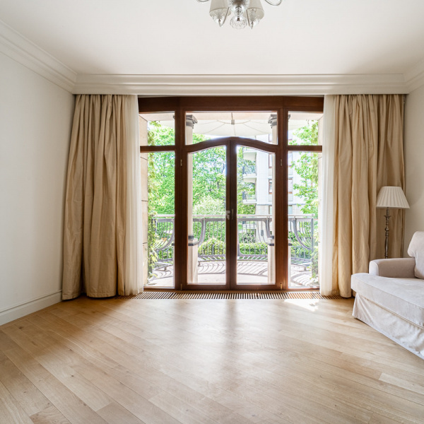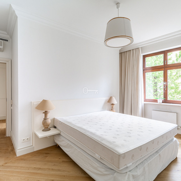 Apartament z pięknym widokiem na zieleń Ogrodu Saskiego. Wykończony w stylu klasycznym, materiałami wysokiej klasy. Całkowicie klimatyzowany.