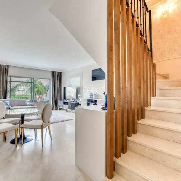 Ten odnowiony dwupoziomowy apartament z 3 sypialniami w prestiżowym Aloha Gardens, Nueva Andalucía, oferuje stylowe i wygodne życie. Kuchnia na otwartym planie płynnie przechodzi w jadalnię i salon, a salon otwiera się na drugi taras, idealny do spożywania posiłków na świeżym powietrzu lub relaksu.