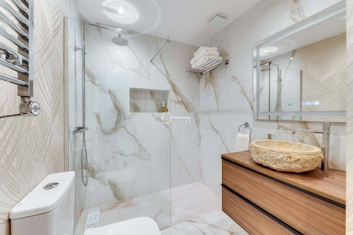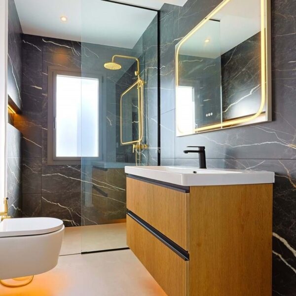 Wyróżniającą się cechą jest górny taras, przekształcony w wyrafinowany bar i przestrzeń do relaksu. Mieszkańcy mogą cieszyć się dostępem do dwóch odkrytych basenów, krytego basenu i dodatkowego bezpieczeństwa ogrodzonej społeczności. Nieruchomość obejmuje również podziemny parking dla dodatkowej wygody.