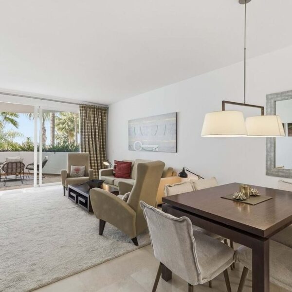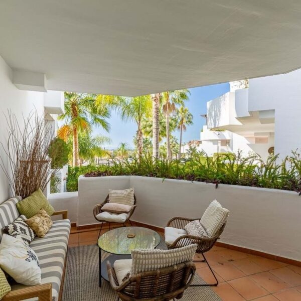 This beautifully presented south-facing three-bedroom ground floor apartment is located in one of the most sought-after communities in Nueva Andalucía, Las Tortugas de Aloha. The property has been furnished to a high standard throughout, combining comfort with modern elegance.