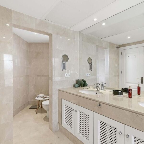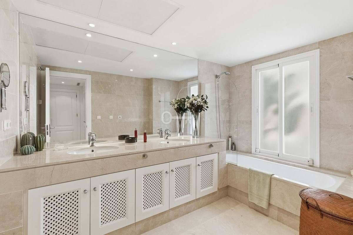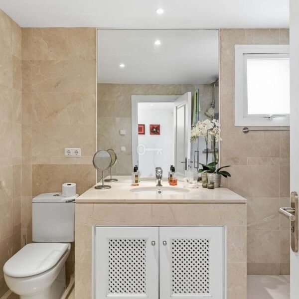 The spacious open-plan living and dining area enjoys direct access to a generous terrace, offering stunning views across Nueva Andalucía. From here, you can take in panoramic vistas of the Mediterranean Sea, Golf Valley, Gibraltar, and even the coast of Africa.