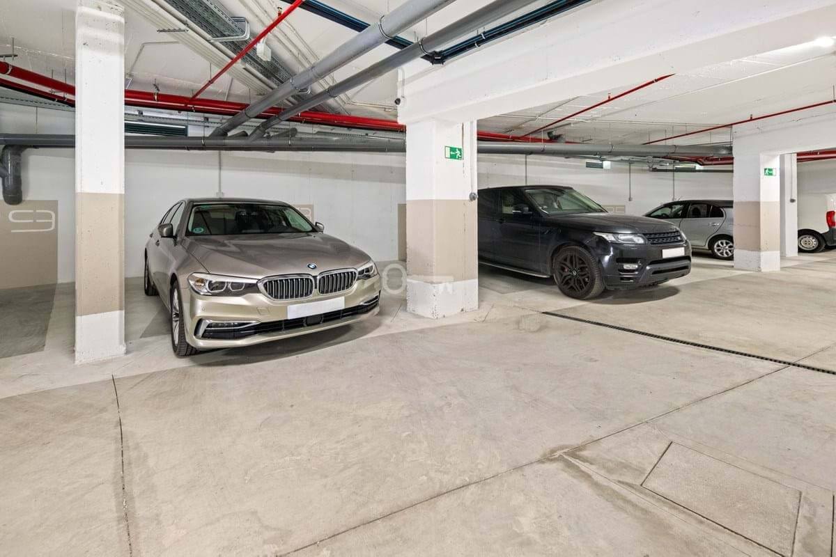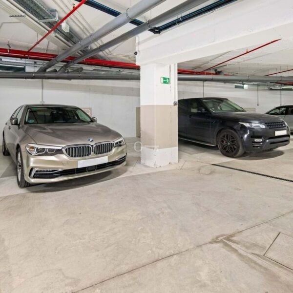 The property includes two private parking spaces pre-wired for electric vehicles and a storage room, ensuring convenience and practicality.