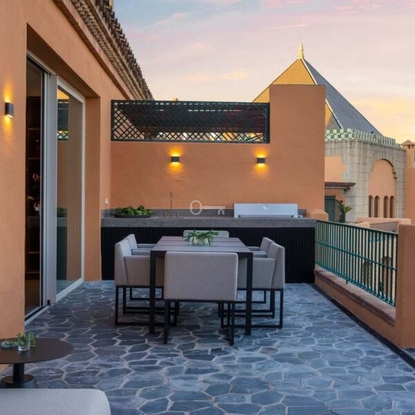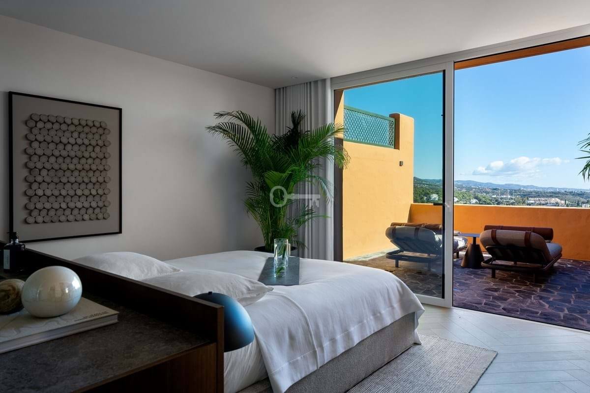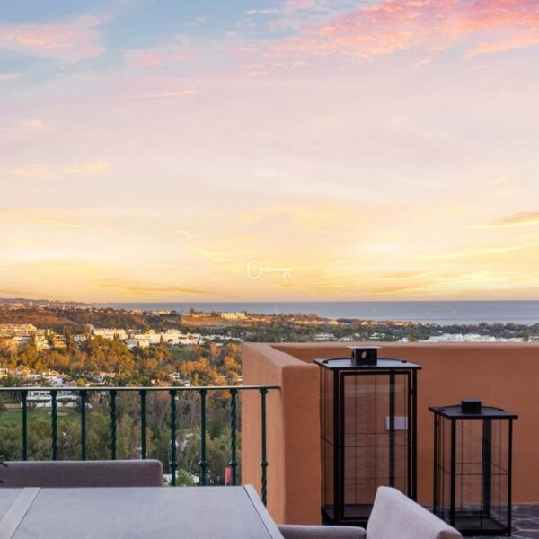 This spectacular fully renovated duplex penthouse offers refined luxury living within one of Nueva Andalucías most prestigious gated communities. The residence presents a sophisticated fusion of mid-century and contemporary design, finished with premium materials throughout. Rich dark oak detailing, elegant parquet flooring, and bespoke small-format tiling create a timeless aesthetic that feels both warm and modern.