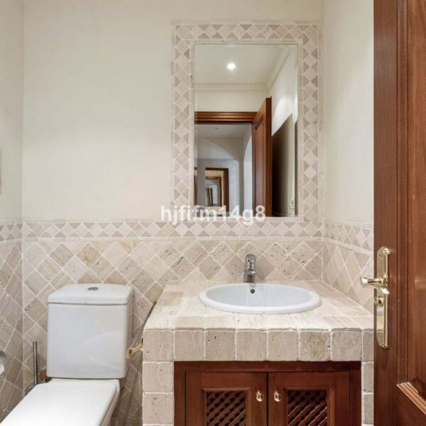 Ascending to the upper level, the property reveals a truly impressive master suite. This expansive space includes a luxurious en-suite bathroom and access to a private terrace, offering an exclusive sanctuary with elevated views across Nueva Andalucía and beyond.