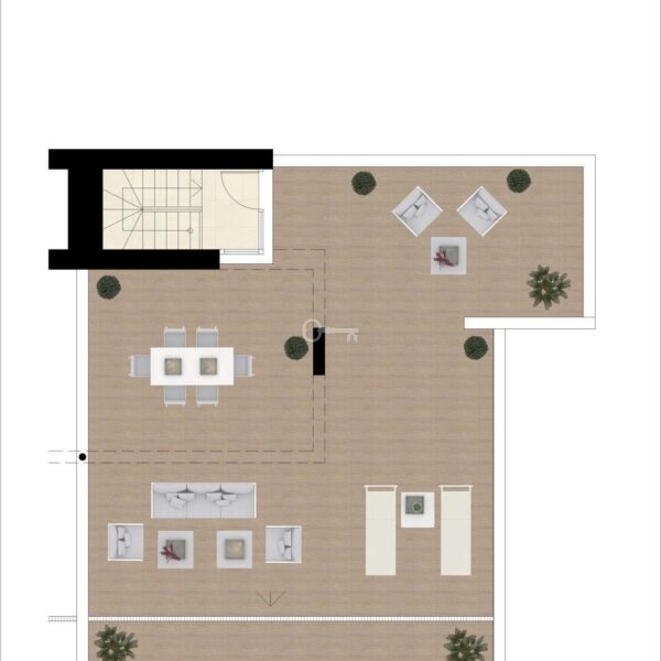 Designed with contemporary style and premium materials, the open-plan living area features a sleek kitchen with high-end appliances and natural finishes. Floor-to-ceiling doors open to a spacious south-facing terrace with panoramic views of the Mediterranean and the beautifully landscaped gardens.