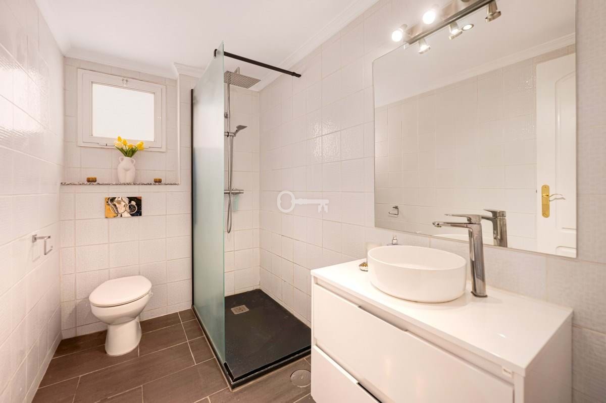 Wewnątrz apartamentu znajduje się hol wejściowy, który prowadzi najpierw do kuchni, a następnie do łazienki dla gości i przestronnej sypialni. Główny apartament posiada własną łazienkę, garderobę i bezpośredni dostęp do tarasu. Salon i jadalnia są przestronne, z kominkiem jako centralnym punktem i przesuwanymi drzwiami otwierającymi się na główny taras, który z łatwością pomieści część wypoczynkową na świeżym powietrzu i ma wystarczająco dużo miejsca na grilla. Stąd można podziwiać otwarte widoki na wspólny basen i ogrody, a także uderzającą górę La Concha w oddali.