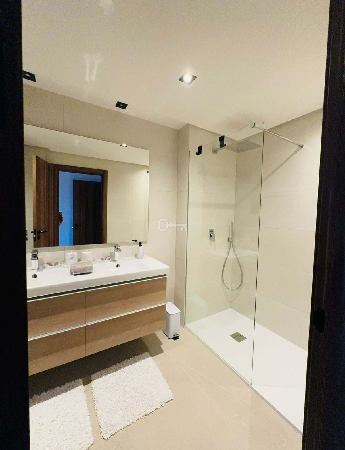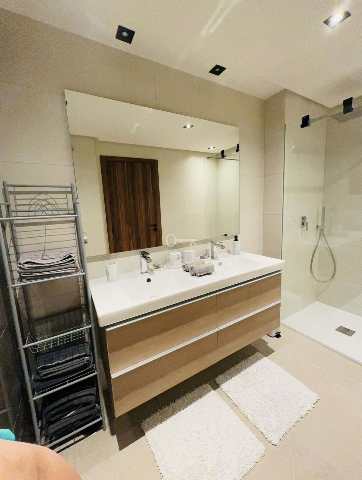 Wewnątrz apartament oferuje 137 m² powierzchni całkowitej (94 m² użytkowej), z 2 przestronnymi sypialniami, 2 eleganckimi łazienkami, tarasem i balkonem. Dodatkowe udogodnienia obejmują wbudowane szafy, podziemny parking, przechowalnię i pełną dostępność dla osób o ograniczonej sprawności ruchowej.