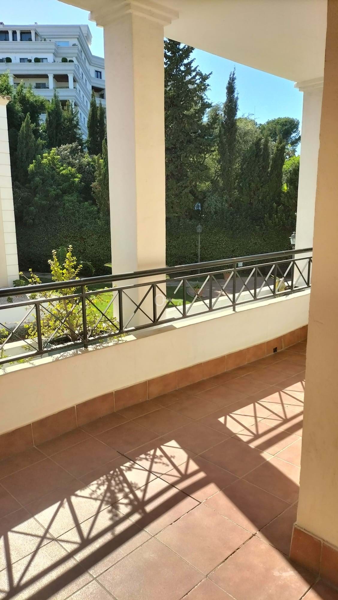 To mieszkanie, które jest dostępne dla osób o ograniczonej sprawności ruchowej, znajduje się na pierwszym piętrze i wychodzi na północny wschód. Nieruchomość ma dwie przestronne sypialnie, z których obie mają dużo miejsca na szafy. Jedna z sypialni wyposażona jest w łazienkę. Salon jest przestronny, wyposażony w kominek i dobrze oświetlony. Wychodzi na taras z widokiem na ogrody i wspólny basen.