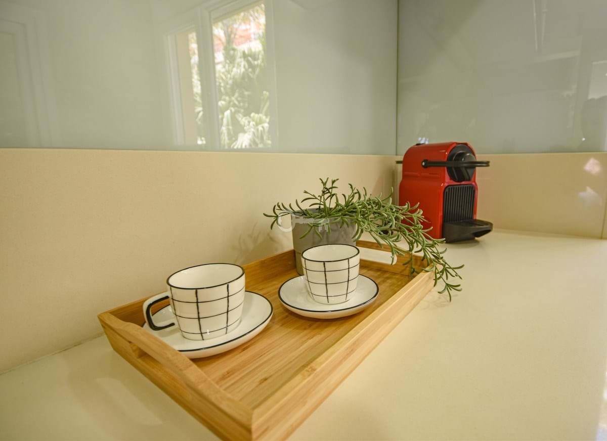 Kuchnia jest w pełni wyposażona w kuchenkę mikrofalową, dwudrzwiową lodówkę, piekarnik, zmywarkę, czajnik, toster itp. W tej samej kuchni znajduje się pomieszczenie, w którym znajduje się pralka i duża przestrzeń na żelazko.